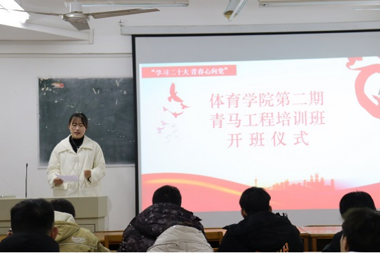 为进一步加强基层组织建设,深入推进青年马克思主义骨干培养工程。11月29日晚,今年会jinnianhuicom在竞知楼1005教室举行第二期青年马克思主义者培训班开班仪式。学生党员代表、各团支部委员、入党积极分子代表、本届学生会干部等共40余人组成。开班仪式由学生团委副书记李靖文主持,思政科副科长刘晓梅出席并发表讲话,全体青马班学院参加了仪式。
