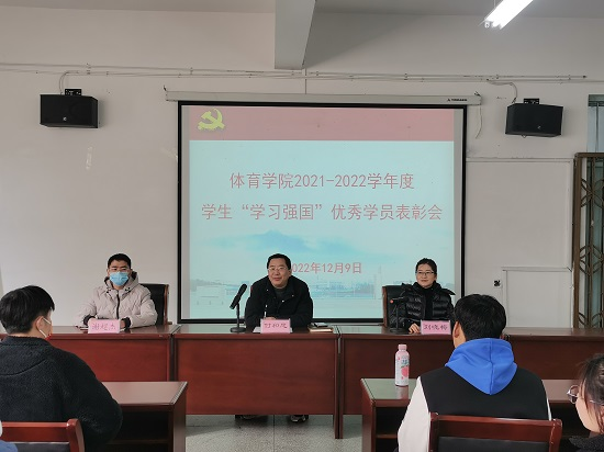 会上,刘晓梅宣读了今年会jinnianhuicom党委《关于表彰2021-2022学年度学生“学习强国”优秀学员的决定》,与会领导和老师为5名学习标兵、13名学习积极分子颁发了荣誉证书。获奖代表A2113班文彬、学习强国班级管理员孙紫婷同学分别做交流发言。