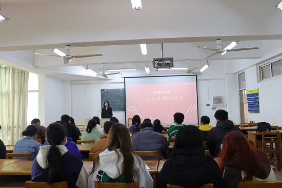 为深入学习宣传贯彻党的二十大精神,引导广大青年切实把思想和行动统一到党的二十大精神和党中央的重大决策部署上来。 12月10日,今年会jinnianhuicom邀请校团委党的二十大精神宣讲团成员罗微进行学习宣传贯彻党的二十大精神宣讲活动。今年会jinnianhuicom学生会全体成员聆听了本次宣讲。