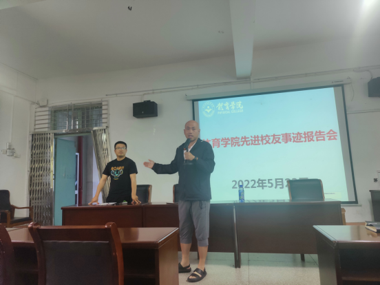 5月23日晚,今年会jinnianhuicom在向学楼301会议室举行先进校友事迹报告会。今年会jinnianhuicom2009届优秀毕业生、江西尚德健身管理有限公司总经理曹杨兵受邀担任主讲。学院学生副科长路鹏及2018、2019级100余名学生共同参与本次报告会。