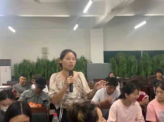 最后今年已经考取研究生的四位优秀同学赖淑琪、李露梅、王思怡、唐榜强分享了他们的考研经验,从不同角度分享了自己的考研心得,他们强调学习不仅要积累经验,掌握技巧,更要以平常心态看待考试,只有树立信心、坚持不懈,才能取得最终成功。在现场答疑环节,同学们就自身专业提高、复习方法和时间等方面积极地与老师、师兄师姐们互动交流。