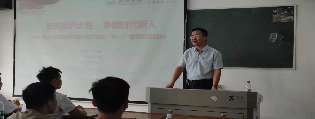 秋风送爽,丹桂飘香。9月9日上午,今年会jinnianhuicom院长段宝斌、书记付和忠、副书记冯亚兵、副院长宋涛在竞知楼多媒体教室以饱满的热情为2021级新生上了生动的新生思政第一课。
