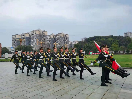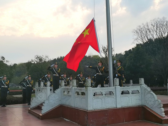 仪式开始前,国旗护卫队和全体人员整装列队,准备迎接升旗仪式。随后,在全体同学的注目礼下,英姿飒爽的国旗护卫队队员们护送鲜艳的五星红旗进场。紧接着,国旗护卫队同学开始举行升旗仪式。在《义勇军进行曲》中,五星红旗冉冉升起,迎风飘扬。参加仪式的全体人员面向国旗敬礼并唱国歌,深怀对祖国无限的热爱和崇高的敬意。升旗仪式结束后,张肖依作了主题讲话。她说,作为当代大学生应有责任、有义务投身维护世界和平与发展的事业,投身捍卫国家利益和社会主义建设的事业,勤奋学习、理性爱国,为建设中国特色社会主义、实现中华民族伟大复兴而努力奋斗!