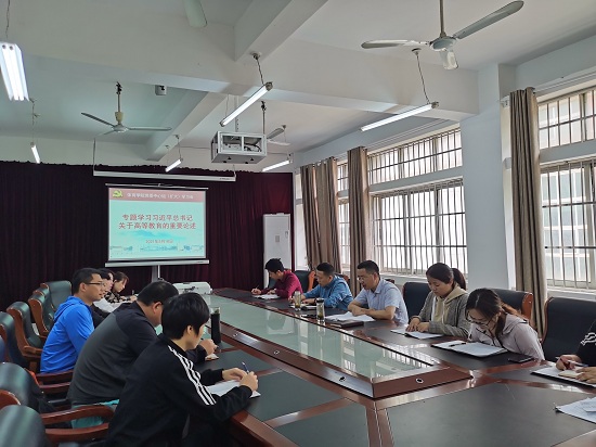 与会同志集中学习了习近平总书记关于高等教育的重要论述,重点学习了习近平总书记给中国戏曲学院师生的回信、致厦门大学建校100周年的贺信、在清华大学考察时的重要讲话。专题学习了新民主主义革命时期历史,重点学习了《中国共产党简史》第一章:中国共产党的创建和投身大革命的洪流,以及习近平《论中国共产党历史》的有关章节。三位同志围绕学习内容作了交流发言。