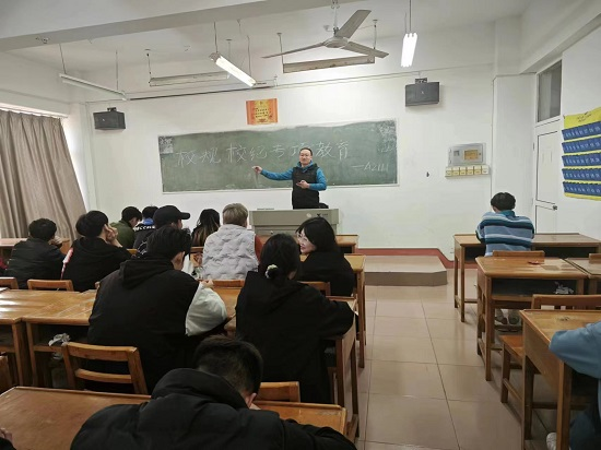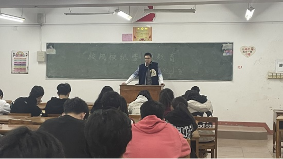 活动上,各班班主任组织学生学习专题《学生手册》等教育管理规章制度,向学生们强调违反校规校纪的后果,要求同学们心中有尺,行为有度,勤奋学习,争创“乐学、好学”的优良学风,同学们认真聆听、积极回应,形成了富有纪律的班会学习氛围。同时,各班结合近期学生违反校规校纪的典型案例,提醒同学们要牢筑纪律意识,严格遵守校规校纪,争做新时代文明大学生。