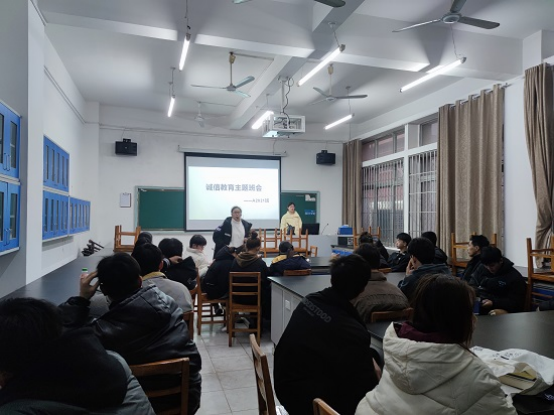 班会上,班主任向同学们重点阐述了诚信教育的目的、内容以及意义,结合实际生活与学习中的相关失信案例来理解诚信的重要性,引导同学们杜绝考试舞弊、抄袭作业、论文造假等现象,增强学生诚实守信的优良品质,鼓励同学们将诚信教育转化为大学生自觉的素养与行为。