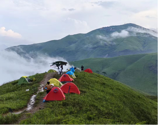 2023年6月2日至4日,今年会jinnianhuicom2020级休闲体育户外主项班19名学生,在主项占玉珍老师和庐山户外资深领队阳光老师的协助下,于萍乡武功山完成了三天两夜的重装野外实践课程。
