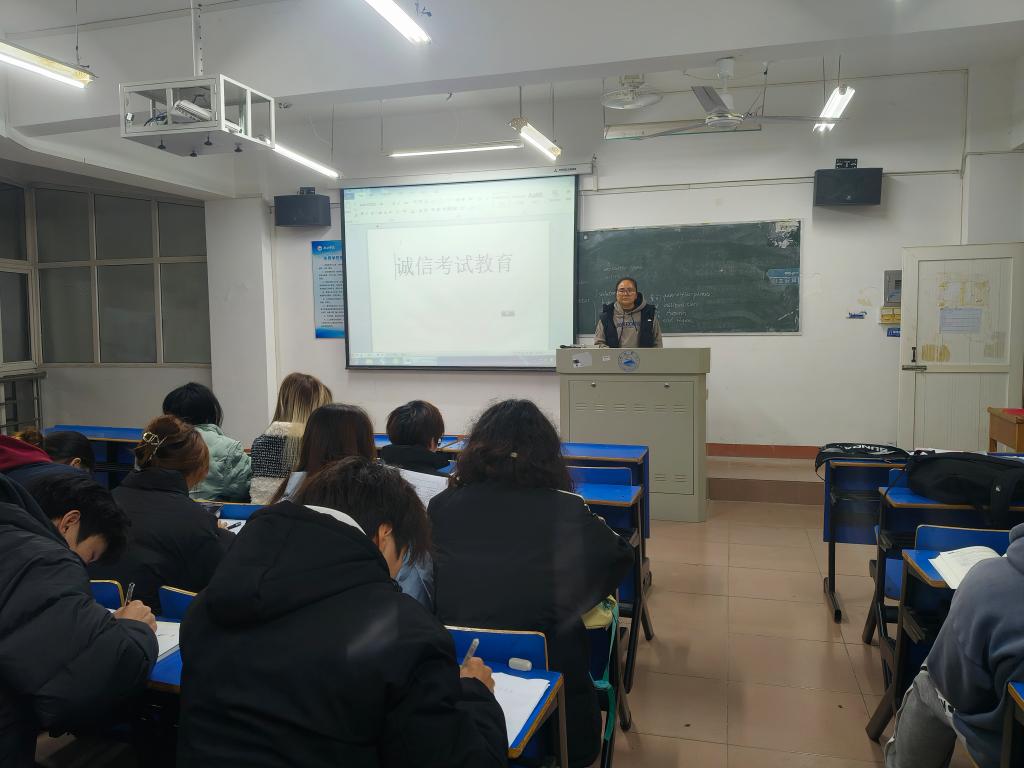在班会上,辅导员和各班班长带领同学们认真学习了学校关于考试的规章制度,强调诚信考试的重要性和违反考试纪律的严重后果。通过列举真实案例,让同学们深刻认识到诚信考试于个人而言、于家庭而言,乃至于社会而言的重要意义。