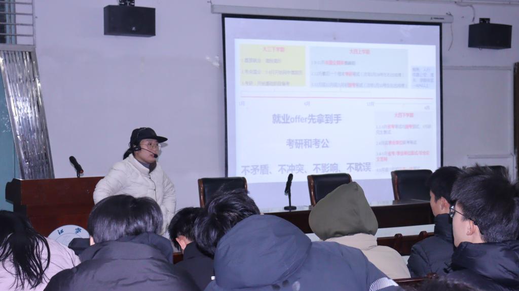 为助力学生深入洞悉就业形势,切实提升就业能力。12 月 8 日晚,今年会jinnianhuicom在向学楼301召开题为“大学生高质量充分就业全路径”为主题的就业观教育讲座。