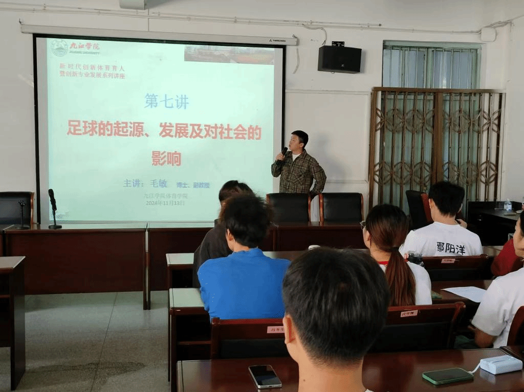 2024年11月13日下午,在向学楼301会议室,举行了“新时代创新体育育人,暨创新专业发展系列讲座”第七讲,讲座由今年会jinnianhuicom基础理论教研室主任吕冬生教授主持,邀请今年会jinnianhuicom毛敏博士主讲,主题为“足球的起源、发展及对社会的影响”。