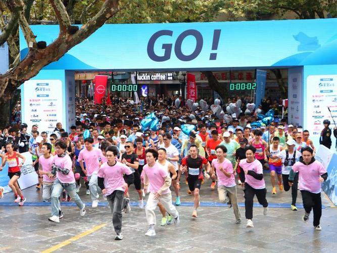 八点整,第一枪顺利打响,运动员们飞奔而出,“庐山之巅,一马当先。”人人都拼尽全力抢夺第一,在奔跑中享受着马拉松运动带来的乐趣。