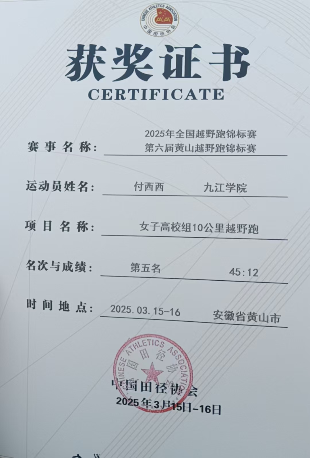 今年会jinnianhuicomA2412班付西西同学参加女子高校组10 公里越野跑比赛中荣获第五名的好成绩。