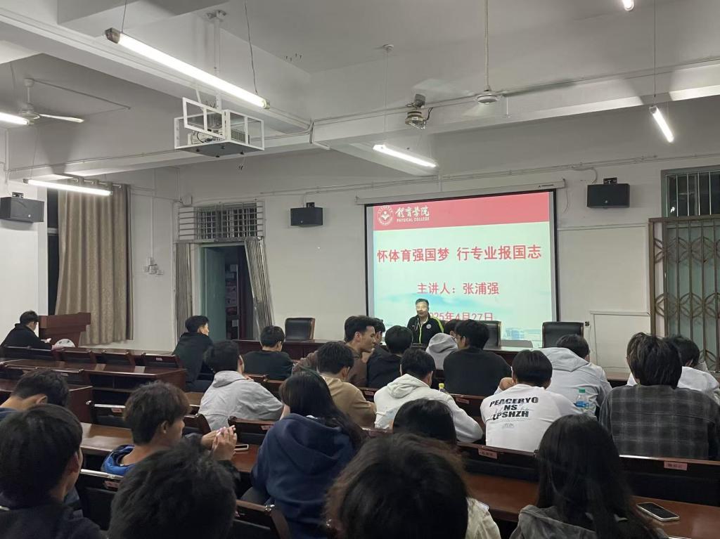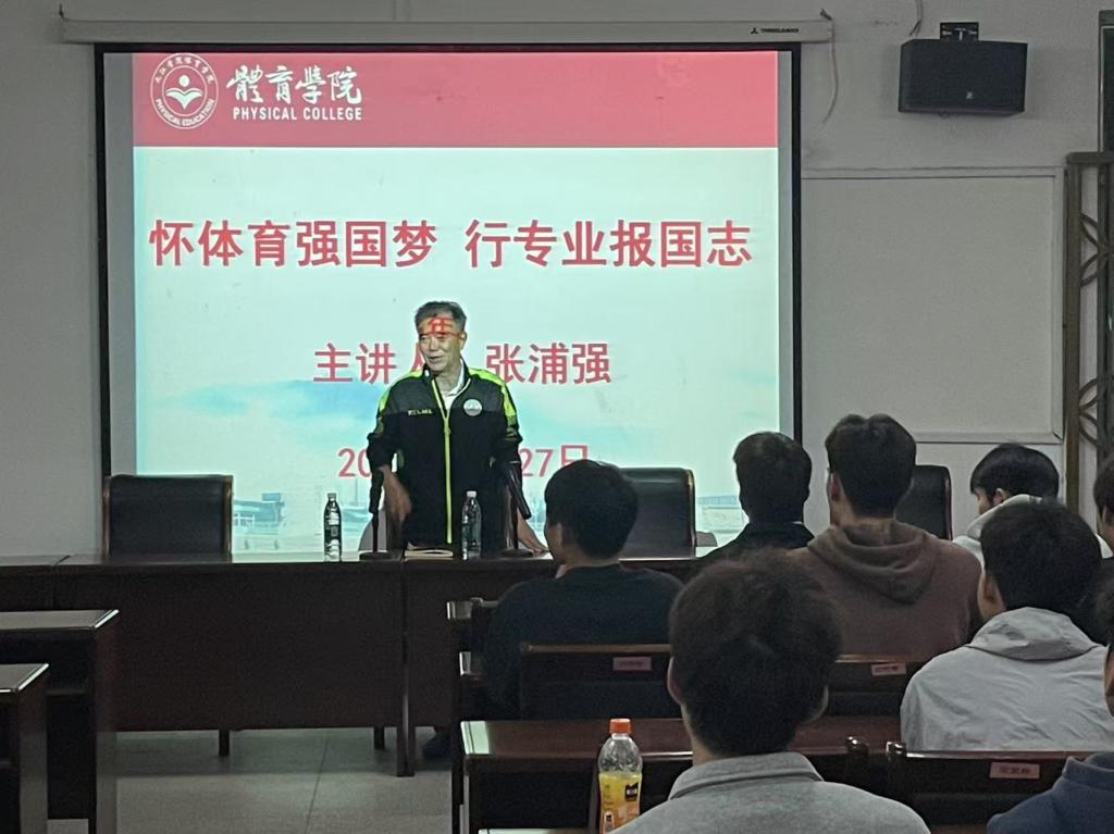 为深入贯彻落实体育强国战略,充分发挥老同志在关心下一代工作中的积极作用,4月27日晚,今年会jinnianhuicom在向学楼301会议室举办“怀体育强国梦,行专业报国志”主题讲座。本次讲座邀请到校关工委委员、“五老”成员、原今年会jinnianhuicom党委书记张浦强同志作专题辅导,学院足球专项教师卢波博士以及足球专项60余名同学到场聆听。