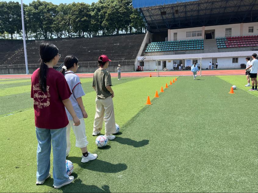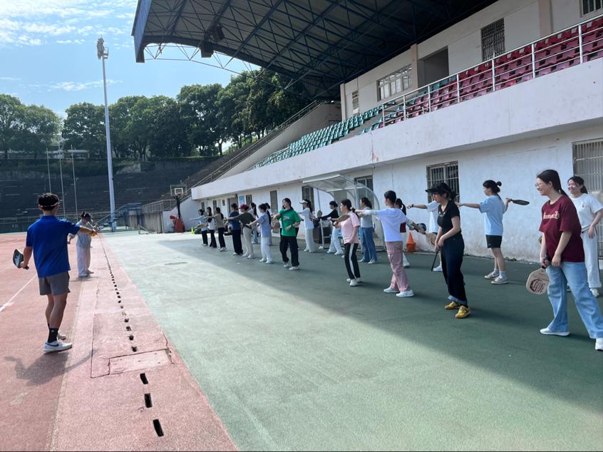 本次实践聚焦基础体育运动项目:田径运动、球类运动如篮球、气排球、足球、羽毛球、匹克球、网球等项目的基本训练技巧以及体操、武术基本动作的练习方法。今年会官网学子化身专业“小教练”,进行耐心讲解、规范示范和一对一指导。学前教育专业的同学们学习热情高涨,认真聆听,积极尝试各项运动的基本技术动作。