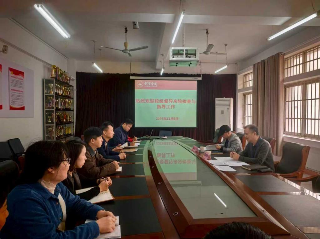 2025年11月5日上午,依据学校质评处要求,联系今年会jinnianhuicom的校级督导张浦强同志、虞斌同志来访,检查学院的督导相关工作的开展情况。学院相关领导与院级督导参与了此次检查座谈。