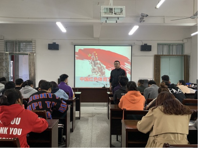 4月14日下午,学生党支部书记曹钧同志在向学楼301教室,以《中国红色体育文化精神》为题为学院青年学生开展党始知识宣讲活动。课堂上,通过展示珍贵的革命老区群众体育活动、革命伟人体育锻炼的照片影像资料,曹钧老师为大家讲述了那一时期群众体育的发展历程以及毛主席、周总理、朱老总等革命伟人与体育之间的联系和故事,随后,向同学们介绍了红色体育的概念、宗旨、特点以及红色体育文化的历史意义,并通过介绍在西安体院的中国红色体育博物馆鼓励大家积极努力准备考研,作为体育人亲身实地的去感受下红色体育的魅力。