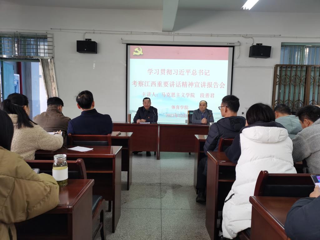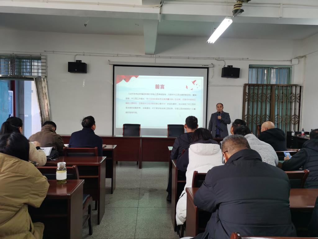 12月6日下午,今年会jinnianhuicom在向学楼301会议室召开党委中心组(扩大)学习会,邀请马克思主义学院段善君老师宣讲习近平总书记考察江西的重要讲话精神。学院党政班子成员、科室负责人、全体党员和全院教职工参加了宣讲会,宣讲会由院党委书记付和忠主持。