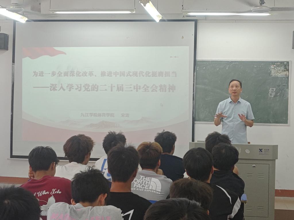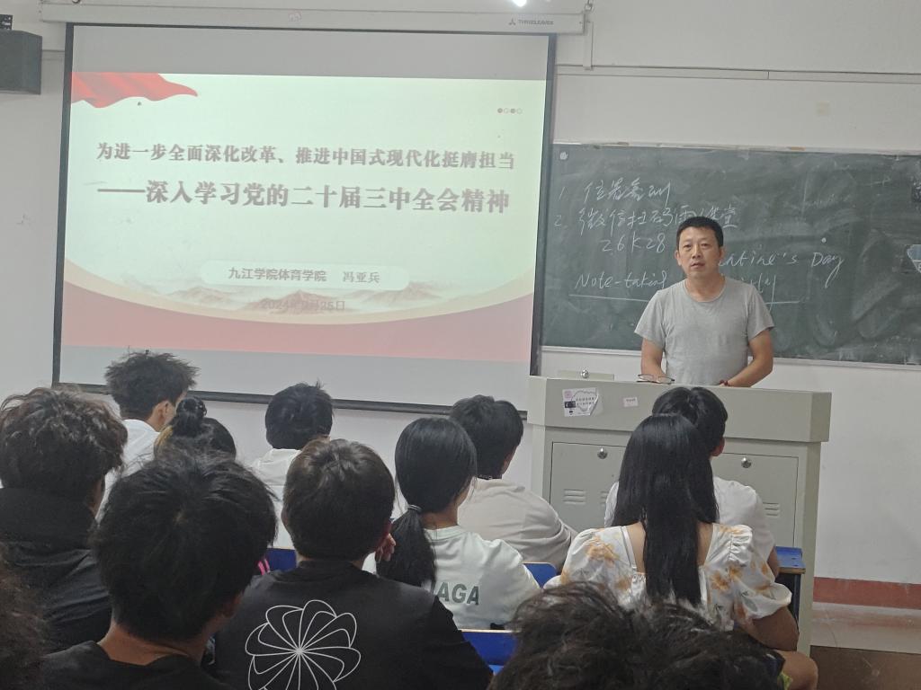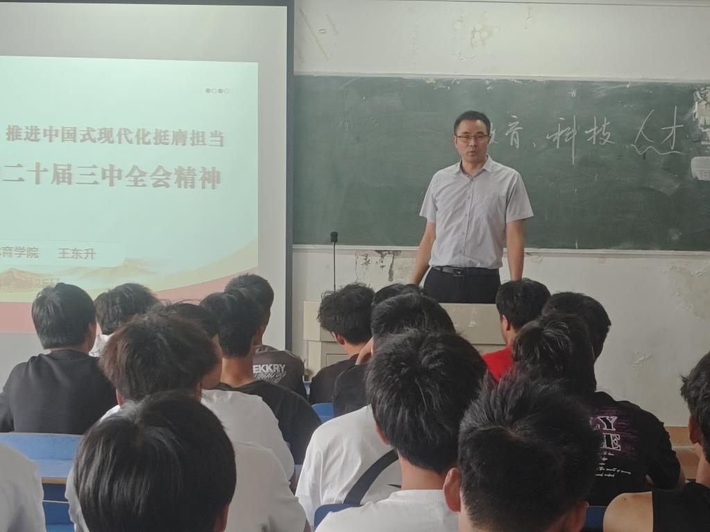9月25日下午,今年会jinnianhuicom领导深入新生课堂,宣讲党的二十届三中全会精神,引导新一代大学生明德励志、求知笃行,为党育好人,为国育好才,为新生“青春逐梦”导航。