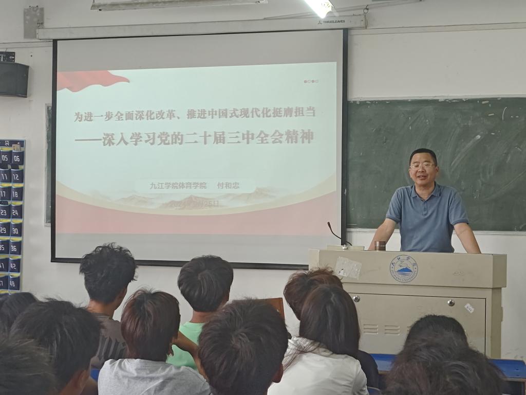 授课中,院党委书记付和忠以《为进一步全面深化改革、推进中国式现代化挺膺担当——深入学习贯彻党的二十届三中全会精神》为题,深入解读了党的二十届三中全会精神,启发引导学生全面、客观认识当前中国式现代化面临的新情况新问题,树立正确的人生观、价值观,坚定中国特色社会主义道路自信、理论自信、制度自信、文化自信。