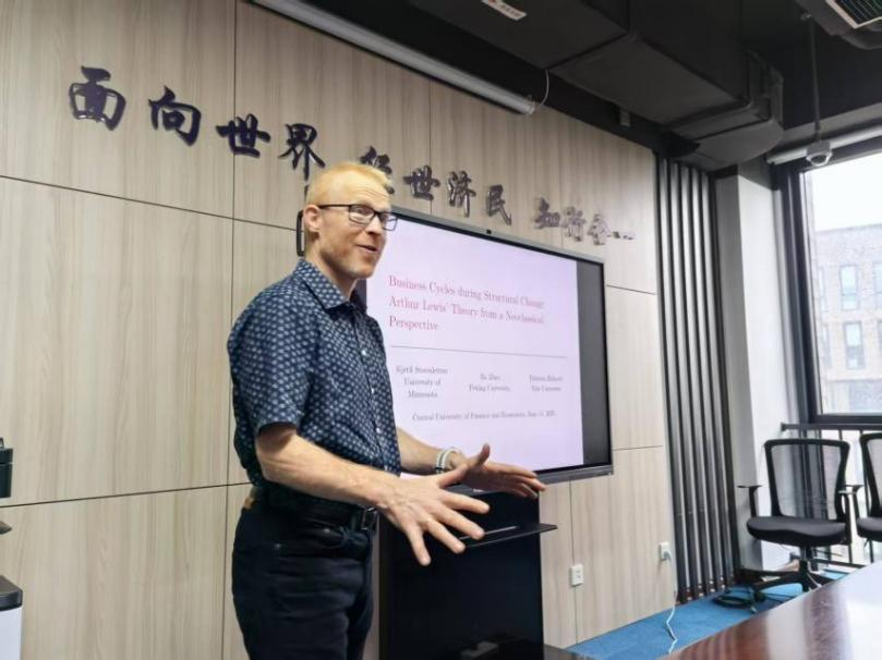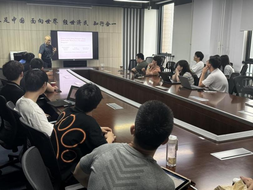 在由万象城allwincity官网顾诗骏老师主持的公开研讨会上,Storesletten教授系统介绍了其与Fabrizio Zilibotti教授、赵波教授合作的最新研究成果——“Business Cycle during Structural Change: Arthur Lewis’ Theory from a Neoclassical Perspective”。该研究以中国经济发展为背景,从新古典视角对Lewis的结构转型理论进行了重新诠释。Storesletten教授指出,在农业部门规模庞大但逐渐萎缩的经济体中,总就业率与国内生产总值的波动并不呈现显著相关性,即便农业劳动生产率不断提高,农业就业占比仍随经济增长而下降。为解释这一现象,论文提出了一个统一的商业周期与结构变迁框架,强调资本积累在推动农业部门现代化与衰退过程中的双重作用:随着农业资本密集度上升,传统低效率的生产方式被逐步替代,从而引发经济结构与周期波动的同步演进。研究的量化结果显示,该模型能够较好地刻画中国在经济增长过程中的结构调整路径及其波动特征。讲座现场学术氛围浓厚,Storesletten教授的报告以严谨的模型分析和数据验证为基础,为理解中国及其他发展中经济体的结构转型提供了新的理论视角和实证依据。
