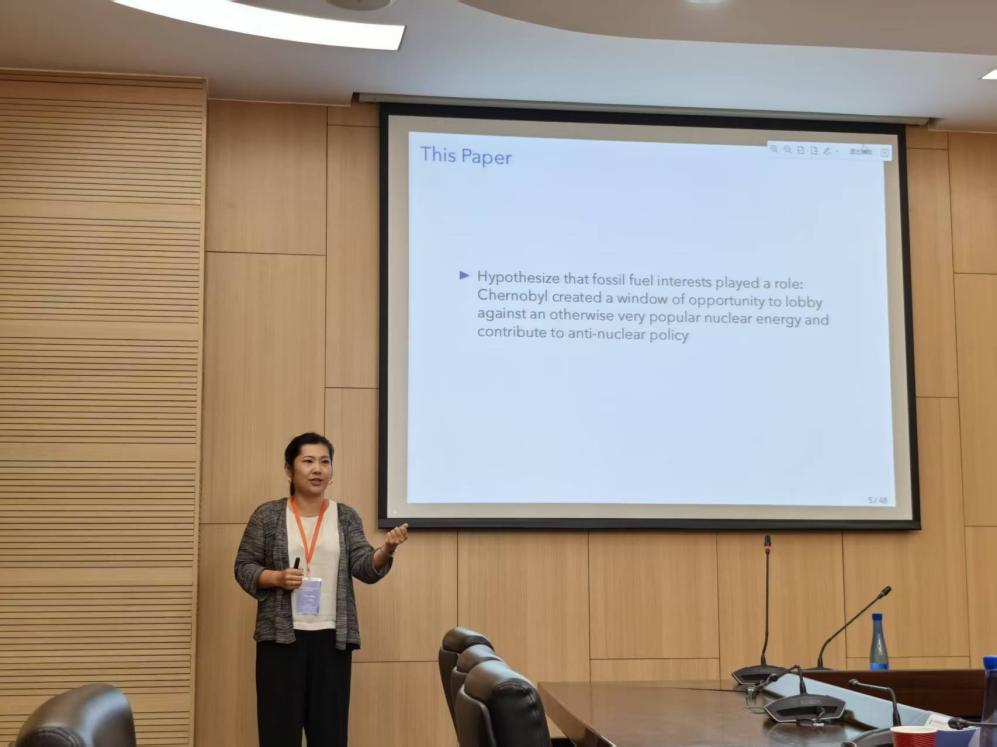 来访期间,Nancy Qian教授首先参加了2025年中国留美经济学会院长论坛,并介绍了与Alexey Makarin、Shaoda Wang合作的最新研究“Fueling” Nuclear Energy Regulations: Fossil Fuel Lobbying after Chernobyl。该研究深入探讨了切尔诺贝利核事故后,化石燃料利益集团如何利用公众对核能安全的担忧,通过政治游说影响政策制定,从而导致全球核电建设步伐显著放缓。通过微观数据分析,研究发现,在美国,化石燃料企业的政治献金增加与国会议员反对核能的投票行为呈正相关;在英国,则观察到采矿工会资助与议会反核演讲的增加。研究进一步指出,媒体中的化石燃料广告收入也与反核报道数量同步上升。研究认为,这一政策转向带来了高昂的社会成本,包括因持续依赖化石燃料而加剧的空气污染及相关死亡。基于此,研究强调了在能源政策制定中进行全面、客观的成本效益分析至关重要。