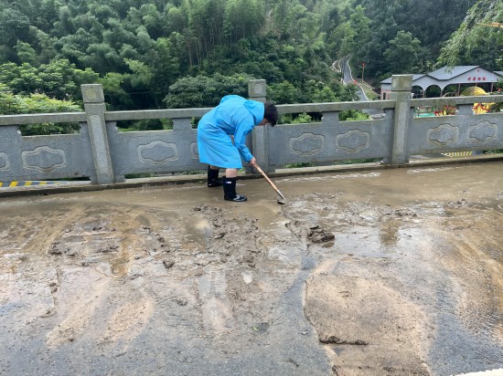 在山体滑坡处,同学们对危险区域设置警示标识,并对滑坡体进行清理和加固。同学们与当地村干部并肩作战,参与防汛抢险、疏通道路、清理河道等工作,他们让鲜红的青年志愿者旗帜在抗洪大堤上高高飘扬。