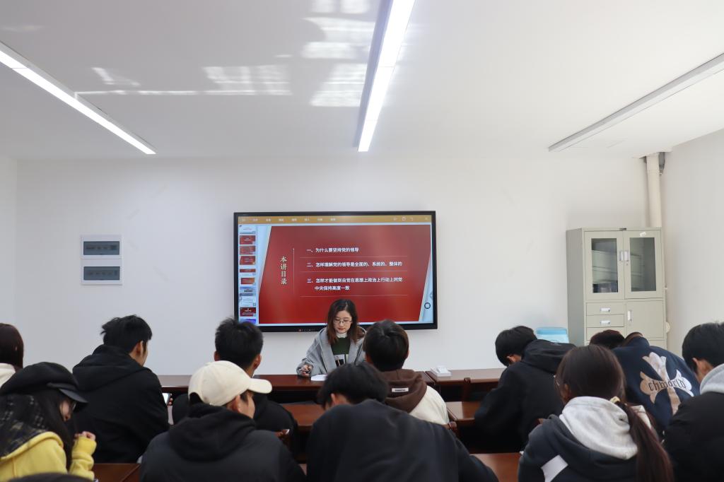 会上,思政科副科长刘晓梅讲授了《论党的全面领导》专题党课,从“为什么要坚持党的全面领导”、“怎样理解党的领导是全面的、系统的、整体的”及“怎样才能做到自觉在思想上政治上行动上同党中央保持高度一致”三个方面作了具体的阐述,号召同学们坚持党的全面领导不动摇,坚决维护党的核心和党中央权威,充分发挥党的领导政治优势,把党的领导落实到党和国家事业各领域各方面各环节。