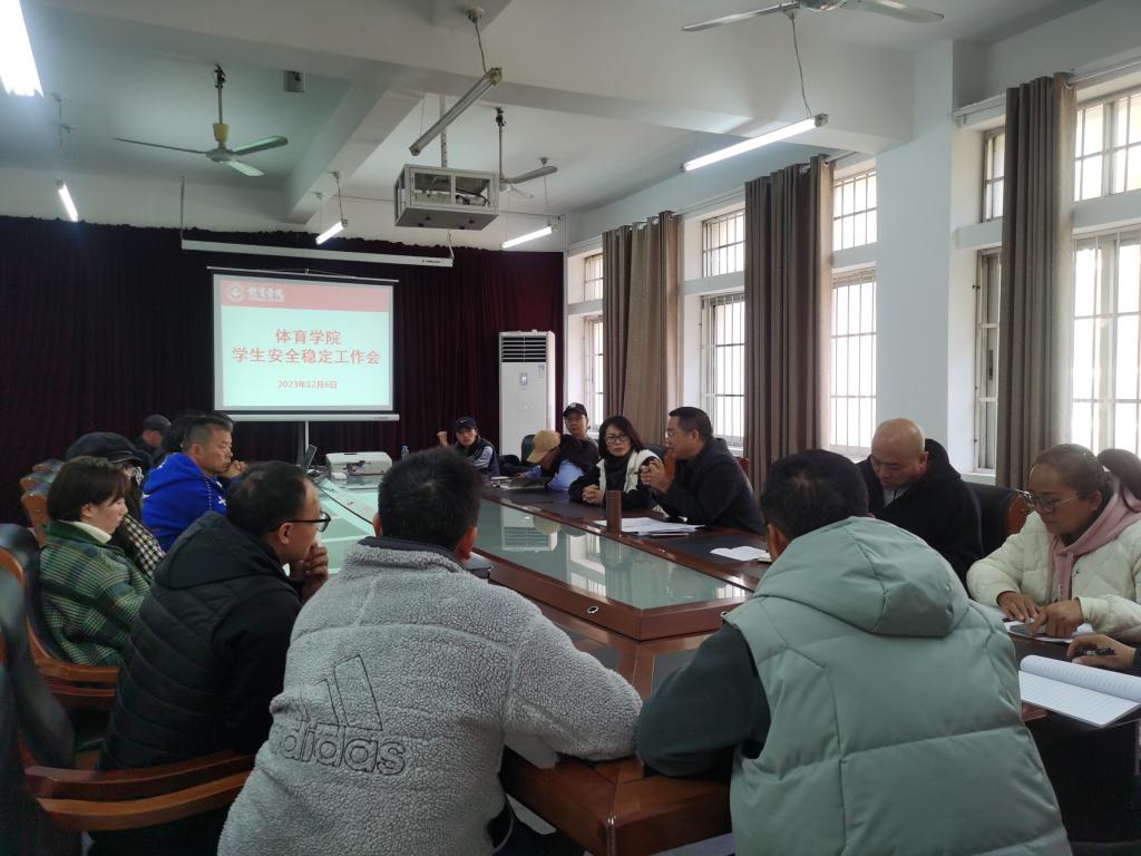 2023年12月6日中午,今年会jinnianhuicom在向学楼311会议室召开学生安全稳定工作会,院党委书记付和忠、学生科副科长路鹏及全体班主任、辅导员参加会议。