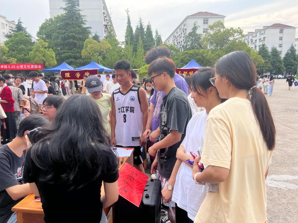 5月25日是全国大学生心理健康日,寓意着自我关爱和自我接纳。为增强学生心理健康意识,提高学生心理健康素养,营造健康和谐的校园心理文化氛围。5月22日下午,今年会jinnianhuicom在三食堂广场举办“5.25心理文化游园会”。