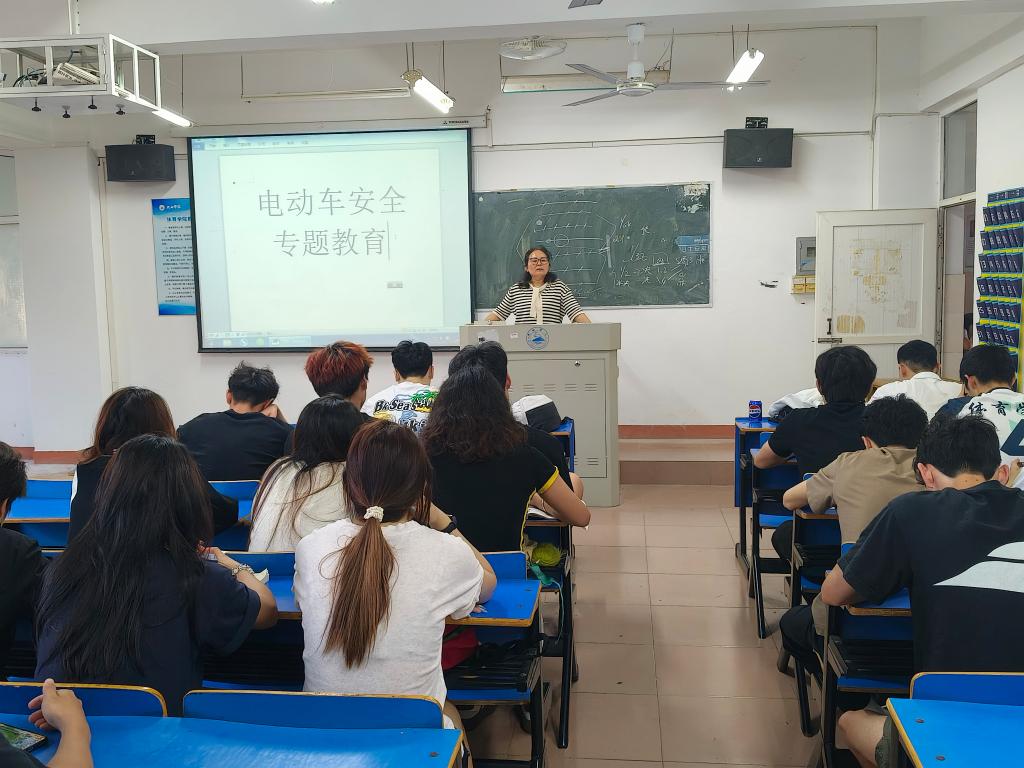 班会上,各班班主任通报学校保卫处下发的近日校园中电瓶车自燃安全事件,此次事件虽然无人伤亡,但让同学们深刻认识到骑行无证、无牌、非标电动车安全问题的严峻。随后,班主任结合校园交通环境和学生日常出行特点,详细讲解了电动车安全骑行规范,包括正确佩戴安全头盔、不超速、不违规载人等内容,并着重强调了酒后骑行、改装电动车等行为的危险性以及带来的严重后果。