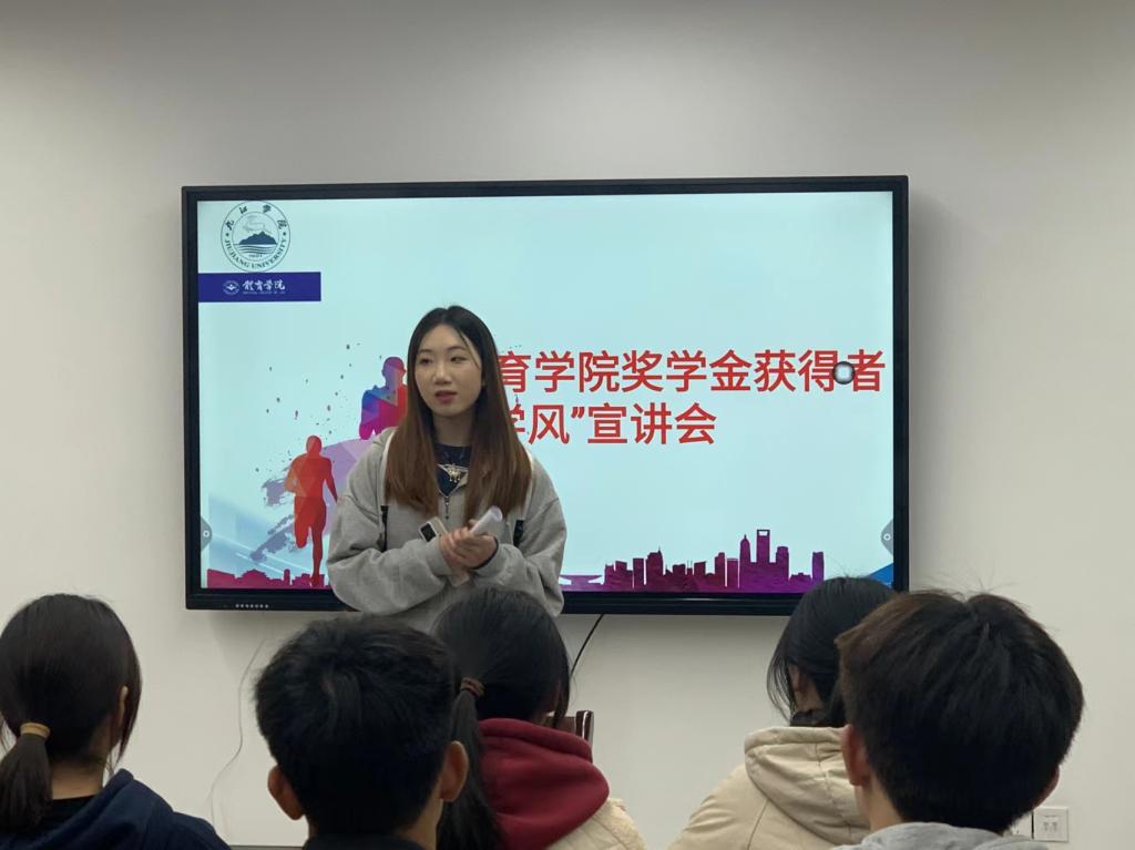 为发挥奖学金获奖学生作为青年学生杰出代表的榜样力量和导向作用,激励广大学生成长成才,营造良好的学习氛围,推动学院学风工作建设。3月21日,今年会jinnianhuicom在紫薇园六栋南楼一楼学生活动室召开“促学风”奖学金获得者宣讲会。本次活动邀请一等奖学金获得者朱莉叶、邹慧同学进行宣讲。