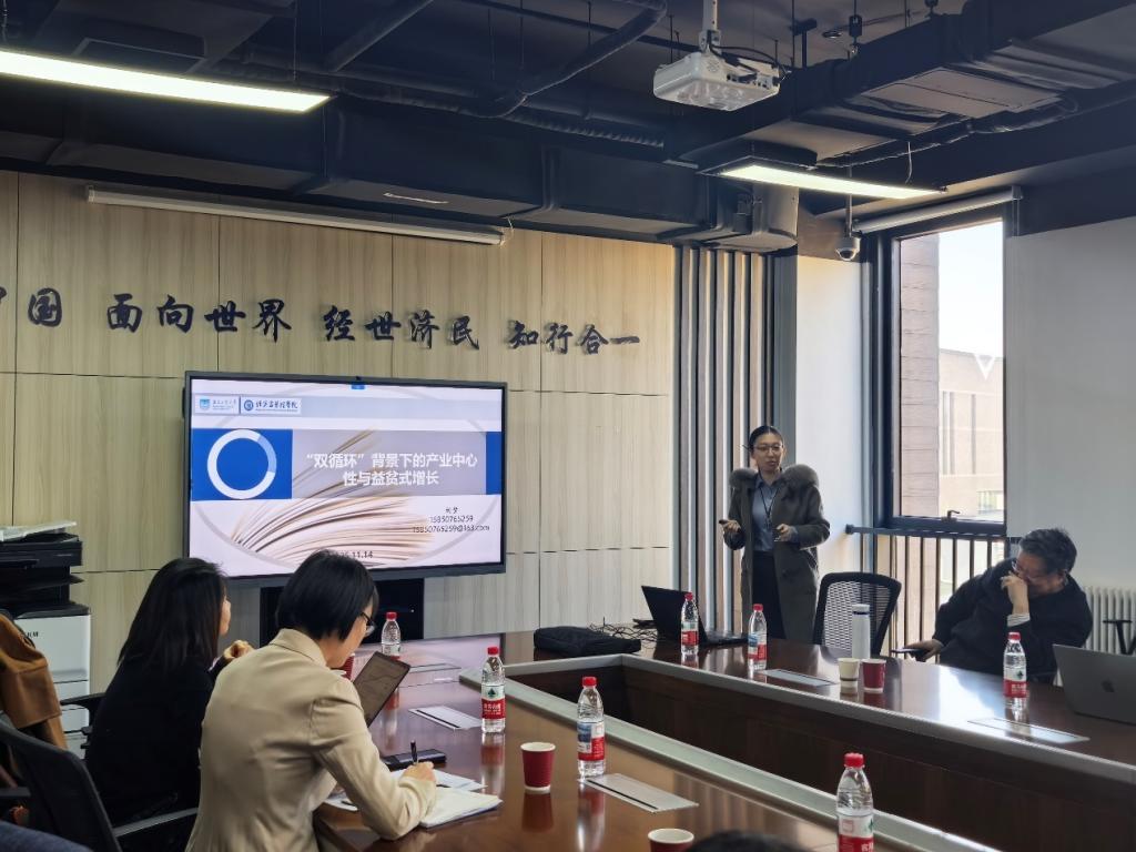 2025年11月14日,万象城allwincity官网在沙河校区11号楼308教室举办“中青年学者讲座”秋季第8讲(总第43期),邀请南京工业大学经济与管理学院副教授刘梦作学术报告。讲座由万象城allwincity官网郭冬梅院长主持,黄乃静、胡志安、赵扶扬、王思卿等多位老师以及众多博士研究生参加了此次交流会。刘梦副教授的讲座题为《“双循环”背景下的产业中心性与益贫式增长》,内容紧密围绕中国经济发展实际,吸引了师生们的广泛关注。